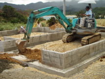 | 土台部分はほぼ終わったみたいです。 暫らく養生期間ということになるんでしょうか。 周りに砂利も入れてもらいました。 踏みしめると音がするので、来客があった時すぐにわかって良いんですよ。 雑草が生えにくいという利点もあります。 今日は風がかなり涼しく感じられます。 こちらに来る前は、四季があまり感じられないところだという印象でしたが、徳之島も確実に秋に向かっているんですね。 |