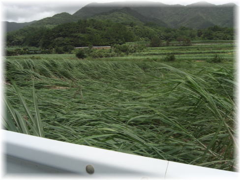 | 台風はたいしたことないように感じたけど、やっぱり被害はあります。 空港の往復で気がついたところを撮ってきました。 上の写真は近所の畑のバナナの木。 実が付いていると重いから折れています。 サトウキビも所によっては根本からバッサリと倒れています。 でも、風に回されてはいないので、強風が止めばムクムク起きてくるんじゃないかな。 |