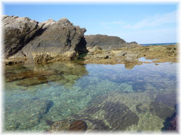| 貝採りをしているから後で遊ぼうとのお誘いに、幼稚園から帰ってから下の浜へ。 岩にへばりついている物体をはがすと・・・。 手に持っているうちに触覚を出してきて、怪獣みたいで可愛いかも。 岩に同化しているので素人にはナカナカ探せません。 私は1個しか見つけられませんでした。 |