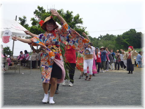 | ↓休憩ポイントでは踊り | ↓最後は公民館前にて手舞 |