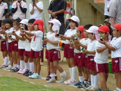 | 23日の運動会。 今年は研修生の”おにいちゃん”と、千葉から見える”よしおじちゃん”を加えて6人の応援団です。 午前中の水分補給用に6人分のペットボトルに名前とメッセージをつけました。 船の欠航が続き、パインは出せず・・・。 こちらは晴れて暑いので、畑ではどんどん熟しそうで怖いです。 飛行機は飛んでいるので、ゆうパックも少しは載せてくれたらいいのに・・・。 貨物専用臨時便とか考えてくれないかな・・・。 |