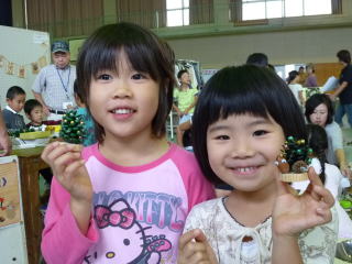 伊仙で友達に会ったので、徳之島町へ一緒に行きました。 こちらの会場は午前中が勝負みたいで、野菜の販売も終っていました。 でも、子供の体験コーナーがあって楽しめました。 色付けされ、台も付けられた松ぼっくりに、ホットグルーガンでビーズを飾り付けます。 自分で出来るので喜んでいました。 |