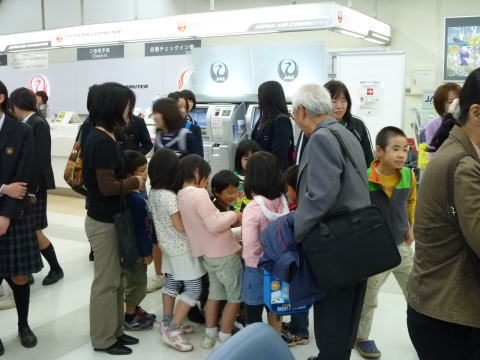 | お友達の見送りへ。 今日は転出される方が多かったようで、空港ビルの前では大きな輪がいくつも出来ていました。 |