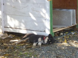 | 新しい犬小屋も気に入ったようで、気持ちよさそうにお昼寝。 なんだか呑気そうに見えてうらやましい・・・。 |
