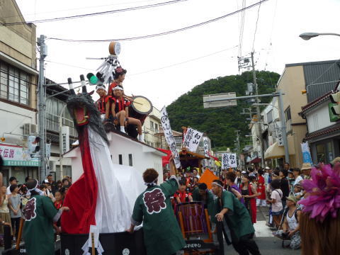 8月2日 地元倉吉の「打吹祭り(うつぶきまつり)」。 ←観光スポット“白壁土蔵”のキャラ【くらすけくん】 。 いろいろな御神輿が出ていて、パレードは迫力がありました。 お祭りになると、人口の少ない街にも人が溢れます。 |
