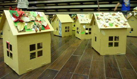 | 離島をつなぐ巡回ワークショップ【ダンボールハウス作り】へ行ってきました。 厚さ1mmのダンボールに切込みが入っていて、簡単に切り離し、組み立てることが出来ます。 そのままでも十分カワイイ、シンプルなハウスを、自由にデコレーション。 芽衣と私は、二人でひとつ作りました。 家から持って行った木のカラーチップと、会場に用意されていたフェルトで、屋根をモザイク調に。 こういう時、不思議なのは、普段はシンプルな、地味~な感じが好きなのに、つい、あれこれ貼り付けたくなってしまうってことです。 勢いがついてしまうと言うか・・・。 家に帰ってからも、次に作る時は・・・のイメージが広がって、とても楽しい時間でした。 |