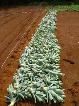 | たんかんを植えていた【松奥】の園を、パイナップル畑に更新しました。 ここの園は、樹が古くなって良い実が採れなくなっていたし、カミキリムシの被害も出ていました。 それに、パインは山で作るより、こちらの方が気温の面でも良いのではないかと期待しています。 パイナップルを続けるかどうか、ずっと悩んでいるのですが、毎年楽しみに待っていて下さるお客様の声に励まされて、規模を縮小してでも続けられたらと思うところです。 |