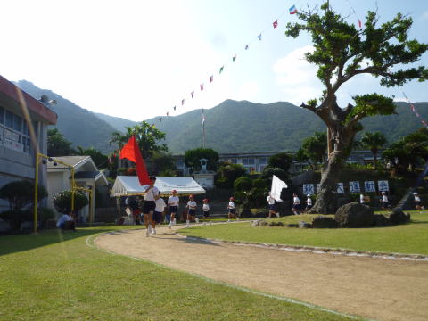 | 先週の日曜日は、花徳小学校の運動会でした。 台風の影響もあり、途中、雨で中断の場面もありましたが、予定されていた競技を全て出来たので良かったです。 ギプスの芽衣は、組体操では、演目を紹介するマイク係だったり、綱引きでは、応援の旗振りだったり。 それでも、徒競走、リレー、親子種目などに参加することが出来ました。 |