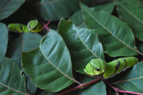 | ↑つついたら角を出します | ↑ これからサナギに |