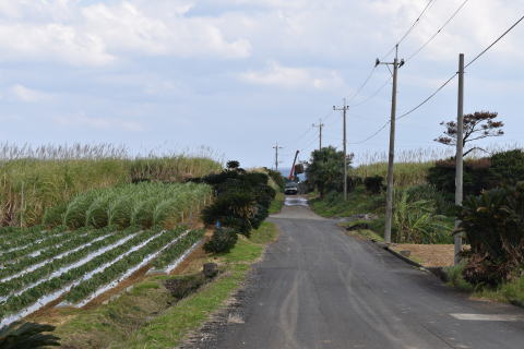 忙しいのはタンカン農家だけではありません。 サトウキビも最盛期。 積み込みで通行止めになっても譲り合いの精神で |
