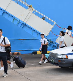 金曜日に修学旅行から帰ってきました。 台風の影響で少々揺れたようですが、元気そうな笑顔で下船。 ホッとしました。 |
