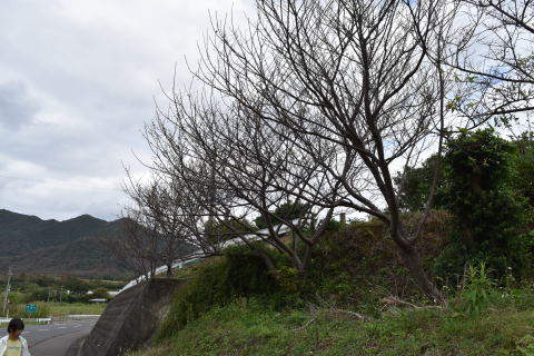 たんかん園では、幼木の周りの防風ネットの支柱がぐらついたり、ネットが外れたりしていました。 支柱が飛ばされているところがあり、すぐそばの樹が根こそぎ倒れていました。 |
