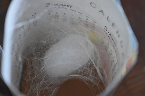 11匹飼っていたお蚕さん。 繭を作ったのは7匹でした。 真っ白な繭ができました。 |