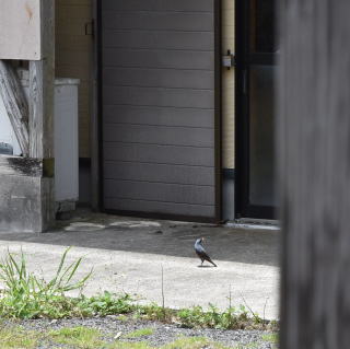 | イソヒヨドリのヒナは、日に日に成長し、羽のカタチもハッキリしてきました。 倉庫の中から、親鳥の姿を捉えることが出来ましたが、シャッターを切ったら気付かれました。 |