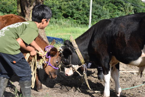 | 県道沿いにある牛小屋の前を通りかかったら・・・。 闘牛少年が牛のお世話中。 正直なところ、闘牛自体にはあんまり興味がない、というか、まぁ、そんな感じなのですが、 愛おしそうに牛を撫でたり、ご飯をあげたりしている姿には、非常に惹かれます。 |