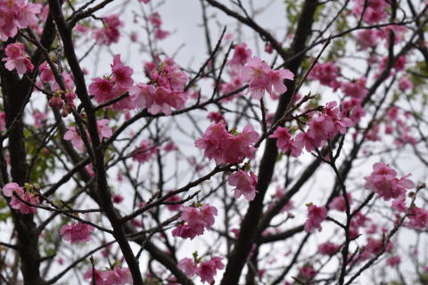 緋寒桜も咲き始めています。 月末が見頃でしょうか。 ハイビスカスは、250以上の原種があり、1万種近い園芸品種があるそうです。 |